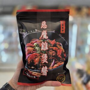 「香港製造」醬神 – 惡魔雞煲醬,醬神獨門祕方配製,一包一隻雞份量10分鐘變廚神,正宗雞煲味,醬汁、乾辣椒香料及超辣辣椒粉分開包裝,隨意調較辣度。